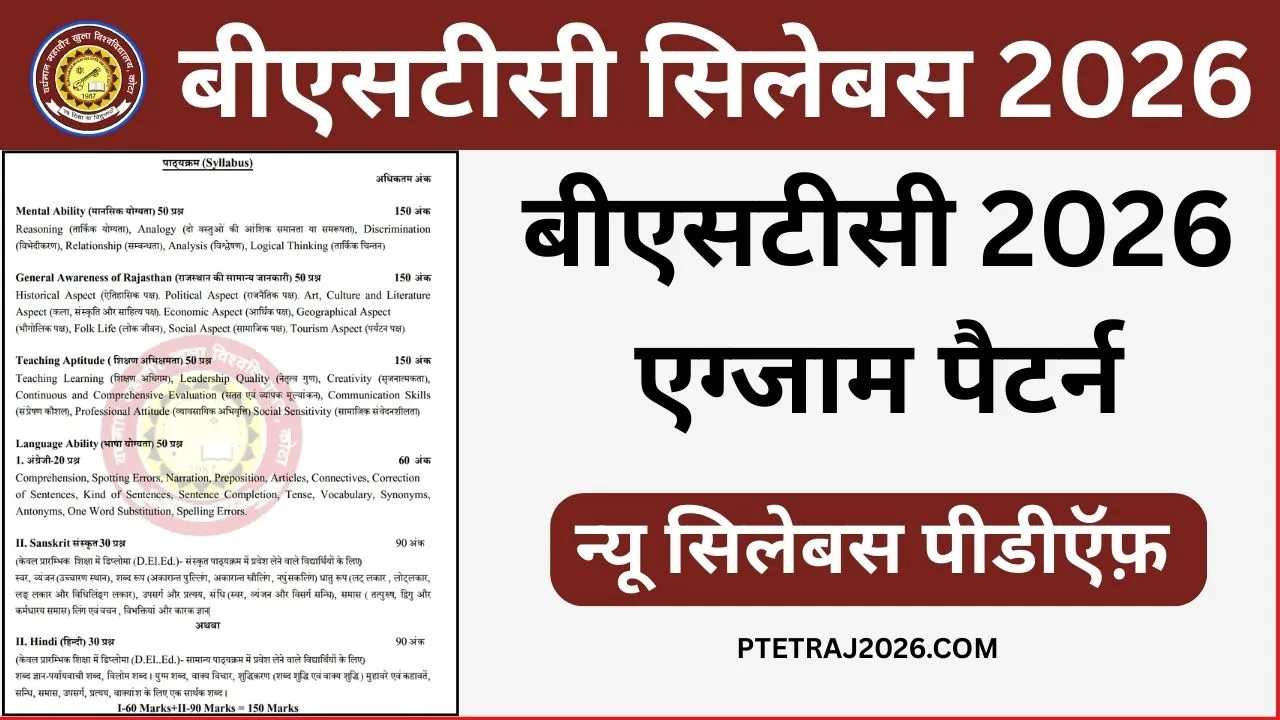 1 thought on “Rajasthan BSTC Syllabus 2026 , Rajasthan BSTC Exam Pattern 2026”